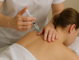 Nach einem ausführlichen Gespräch und einer gezielten Untersuchung erfolgt die Behandlung mit einer sehr feinen Nadel. Die Injektionen können in die Haut, Muskulatur, an Narben oder an tiefer